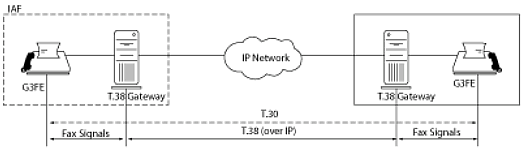 注意: T.38協(xié)議本身直接在收發(fā)網(wǎng)關之間運行。呼叫建立、電傳設備和網(wǎng)關之間其他通信或者電傳設備之間或者其他設備之間的通信不在T.38協(xié)議范圍內(nèi)。