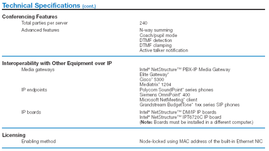 HMP軟件使用了內(nèi)置的網(wǎng)卡(NIC)來(lái)提供IP連接。它支持工業(yè)標(biāo)準(zhǔn)的H.323和SIP協(xié)議來(lái)進(jìn)行呼叫控制,呼叫轉(zhuǎn)移使用H.450.2補(bǔ)充服務(wù)協(xié)議,IP廣播支持象通告,大規(guī)模的只聽(tīng)模式會(huì)議等應(yīng)用。