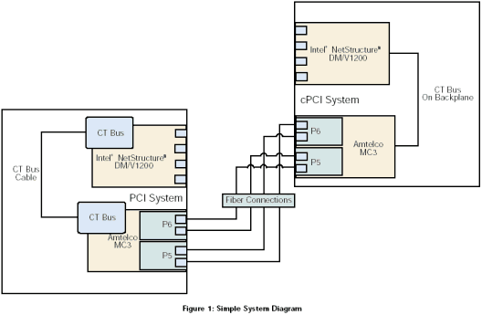 基于Windows操作系統(tǒng)的Dialogic® 系統(tǒng)5.1.1發(fā)布版本特征包1軟件允許通過CT總線多個(gè)板卡共享資源。然而,Dialogic卻沒有提供跨服務(wù)器共享CT總線的機(jī)制,實(shí)現(xiàn)這種功能需要一種可以跨服務(wù)器進(jìn)行CT總線連接。其中一個(gè)可行的解決方案是使用Amtelco
