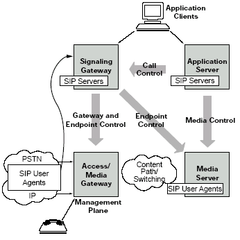 許多語(yǔ)音服務(wù)都是由媒體服務(wù)器提供的。例如,一個(gè)客戶(hù)給某個(gè)電子商務(wù)網(wǎng)站打電話(huà)會(huì)被接到一個(gè)自動(dòng)語(yǔ)音應(yīng)答(IVR)上或者自動(dòng)總機(jī)上。這些應(yīng)用使用了語(yǔ)音,語(yǔ)音識(shí)別和音頻等功能,都是運(yùn)行在媒體服務(wù)器上的。在下一代網(wǎng)絡(luò)的實(shí)現(xiàn)中,媒體服務(wù)器就象是另一個(gè)電話(huà)(或者說(shuō),一個(gè)SIP的終端)。因此,他們可以享受和用戶(hù)一樣的SIP的優(yōu)點(diǎn)。